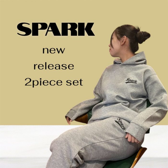 生地は保温性と伸縮性に優れたトレンドのダンボールニット素材にSparkロゴの刺繍入り
